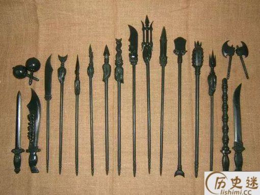 “十八般兵器”究竟指的是哪些兵器,因为年代、地区和流派的不同,对“十八般兵器”的解说也各异。汇总起来。古今有以下十多种不同的说法。