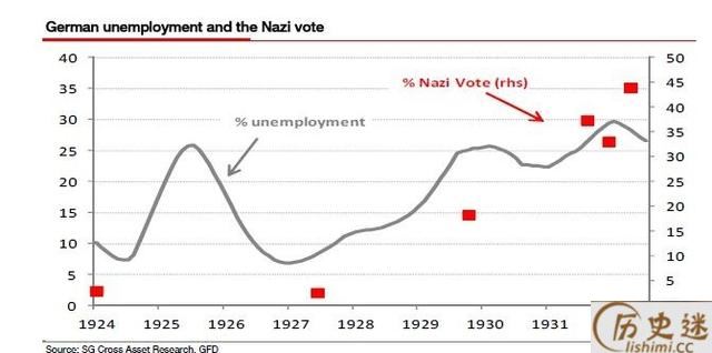 在希特勒任职时代,他承诺会降低国家的失业率,如果他能看到今天的德国,大概会比较满意:现在德国的失业率在4%左右,虽然略高于美国。因为由于通货膨胀和其他经济困难,希特勒任职期间的失业率很高。事实上,纳粹党取得政权是经济状况糟糕的主要原因。