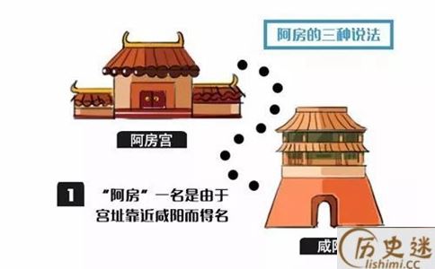 第一种观点认为,“阿房”一名是由于宫址靠近咸阳而得名的。据司马迁《史记·秦始皇本纪》记载:“秦阿房宫亦曰阿城,在雍州长安县西北一十四里。”所以,唐初著名儒学家颜师古解释说:“阿,近也,以其去咸阳近,且号阿房。”