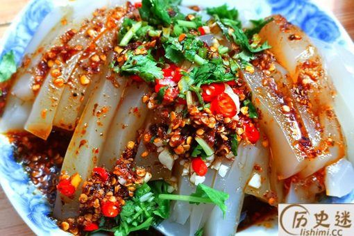 5、伤心凉粉:在其他地方凉粉可能是饭桌上的小菜,但是在成都,凉粉既是菜也是小吃。我记得伤心凉粉曾经也上过热搜,因为它太辣,而且分量比较少,所以可能会把你辣哭。但是对于爱吃辣的四川人来说,伤心凉粉的辣度就刚好是可以接受,如果你不是很能吃辣,建议让老板少加一点小米辣即可。