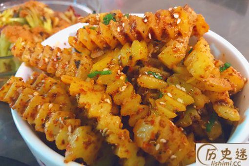 10、锅巴土豆:锅巴土豆也是成都非常有特色的小吃,放在烧油的铁板上煎出焦脆的外壳。然后配上烧烤料、孜然粉、折耳根等一些配料。基本上跟土豆相关的小吃不会踩雷,所以完全可以放心的吃。