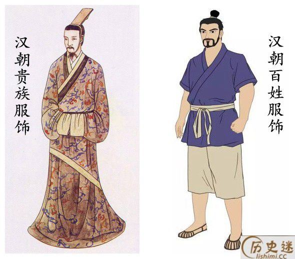 秦汉时期的服装制度大体相似,官员和上层社会所穿着的多是宽袖长袍,而普通百姓和贫穷人家只能穿短衣长裤。