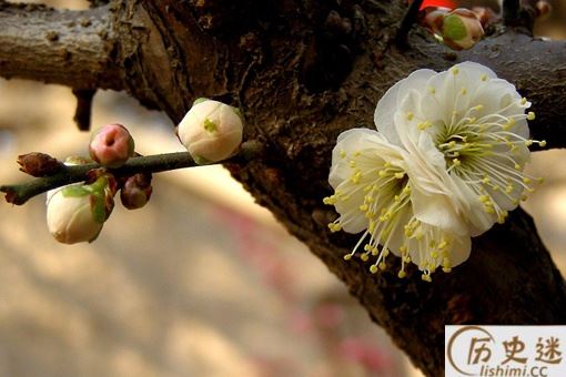 五、六两句是赞美梅花孤高绝俗的品性:清新鲜艳的梅花只能让隔壁的僧人爱惜,尽管它被冷落,但还是不愿让城里的人来观赏。把“邻僧”和“俗客”对举,是因为佛门弟子信奉清净无为的教义,往往和隐逸之士的思想非常合拍,这在历史上屡见不鲜。唐代著名诗人王维,在政治上遭到挫折后,就以“诗佛”自居,“晚年唯好静,万事不关心。”(《酬张少府》),看破红尘,成为佛门信徒。二十年足迹不进城市的林逋也是如此。末尾两句是说:回忆过去在梅花盛开、洒旗飘拂的江南路上,微风吹过,梅花簌簌地坠到马鞍上,叫人情不自禁地吟起诗来。以此作结,饶有情趣。