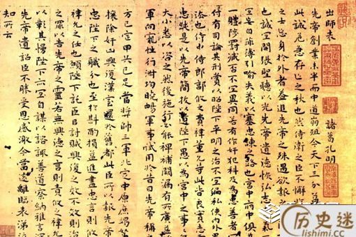 《前出师表》问世近1800年来,后人读之,仍未尝不掩卷慨叹,此乃诸葛亮的忠君报国、救亡图存的肝胆之言、肺腑之音。这文章既是臣子对君王的劝谏之词,也是长辈对晚辈的谆谆教诲,似父亲一般威严,也如母亲一样慈爱,一片用心藏文章,忠义深情寄翰墨,时隔千年,读来仍旧令人感慨系之,催人泪下。