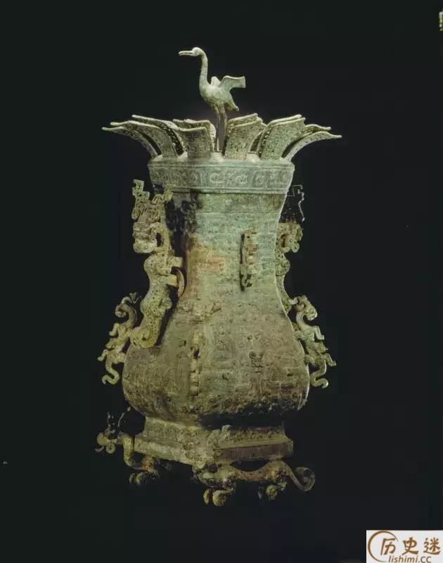 春秋莲鹤方壶,春秋中期青铜制盛酒或盛水器,中国首批禁止出国(境)展览文物。1923年出土于河南新郑李家楼郑公大墓,一收藏于北京故宫博物院青铜馆,一收藏于河南博物院。