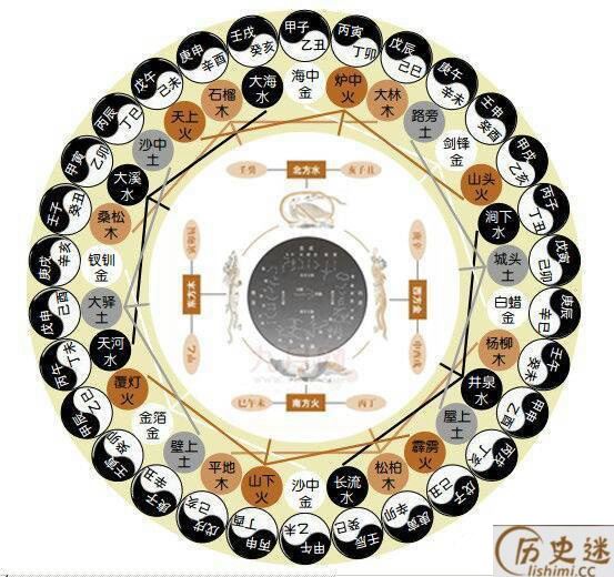 庚辰辛巳白蜡金,壬午癸未杨柳木。 甲申乙酉泉中水,丙戌丁亥屋上土,