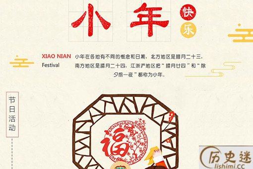 小年,并非专指一个日子,由于各地风俗,被称为“小年”的日子也不尽相同。小年期间主要的民俗活动有扫尘、祭灶等。民间传统上的小年(扫尘、祭灶日)是腊月二十四,南方大部分地区,仍然保持着腊月二十四过小年的古老传统。从清朝中后期开始,帝王家就于腊月二十三举行祭天大典,为了“节省开支”,顺便把灶王爷也给拜了,因此北方地区百姓随之效仿,提前一天在腊月二十三过小年。