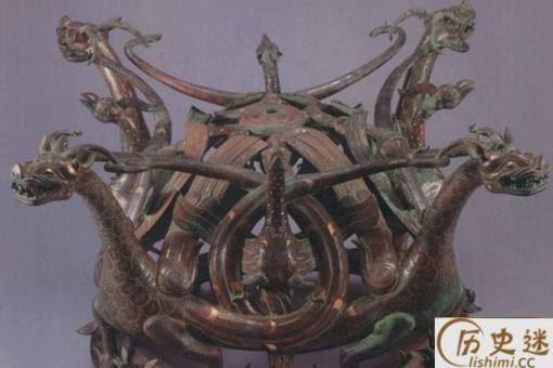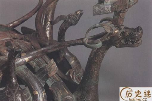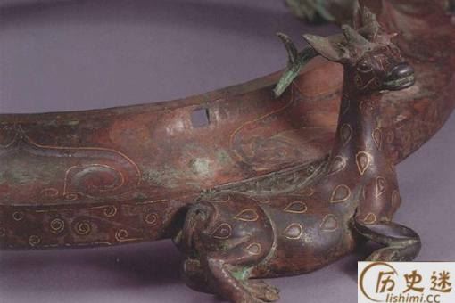 此外,全器采用了战国时期非常流行的错金银工艺,将铜案装饰得富丽优雅,体现出中山国能工巧匠们青铜铸造工艺之高超。其中,鹿角为嵌铸。有专家认为,鹿是用失蜡法铸成。鹿与环形底座之间用哪焊连接,钢钉从环座里面穿人鹿的胸腔,然后将明钉两头焊死。龙凤蟠绕的结构则使用了多种工艺技法。龙凤之身及中部的彩羽形饰、璧形饰为同范铸成,龙头、龙尾和凤头、凤身间用嵌铸法连在一起,为使颈部连接牢固,颈腔内还灌入焊辙。龙的双腿和双翼哪接。凤的双腿、双翅外段、尾部均辙焊连接。凤腿的焊接是将腿的上端插入体腔内用辙焊铸,以避免发生摇动。龙立于环座上,环座与龙足连接处均设有圆孔,孔中用锵焊将二者固定在一起。龙头与蜀柱的连接,在蜀柱下端有椭圆形棒,龙头上部有长方形梅槽,棒人槽后浇人焊辙固定。器上错金银的花纹沟槽,从环座鹿身连接处未曾镶嵌金银丝的部位观察,应为模铸而戚,沟槽铸成后再加工使之符合镶嵌的要求。