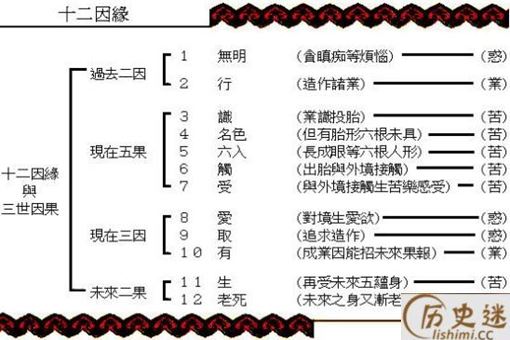 “十二因缘说”,也叫“缘起说”,是佛教用以解释人生现象及世间没有任何孤立存在的现象,也没有任何永恒不变的现象;一切的现象的产生和变化都因一定的条件,叫做“缘起”。
