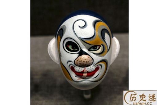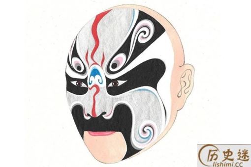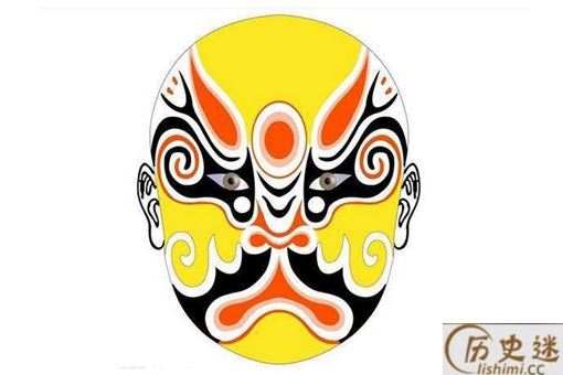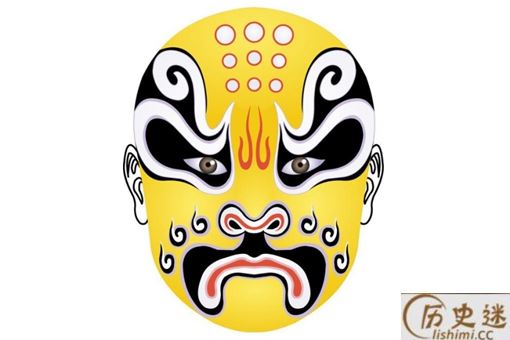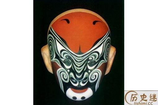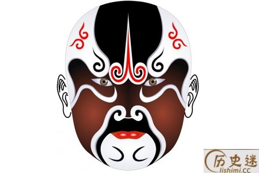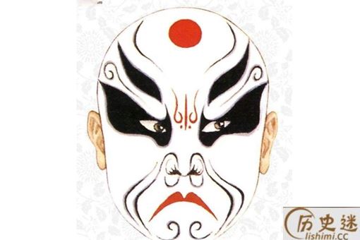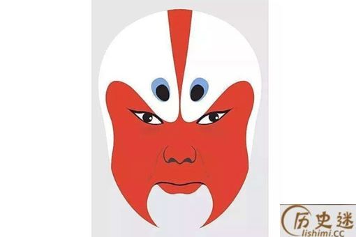 六分脸:这个脸谱的主要特点就是从脑门开始,主色调收缩成为一个色条,将眉毛的形状夸张化,白眉型会占据40%的面积,主色调则占60%的面积,这便是“六分脸”的名字由来,这种脸也可以成为“老脸。”