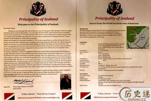在这个世界上有着一个非常有趣的国家,这个国家建立在英国的海域旁边,而整个国家人口仅仅5个常驻居民,而国家的战地面积也仅仅只是一个废弃军事基地的面积。不过麻雀虽小,但是五脏俱全,各种国家机关都有建立,并且宣城与欧洲各个国家都存在过“建交”,而这个小国家就是让人啼笑皆非的“西兰公国”。