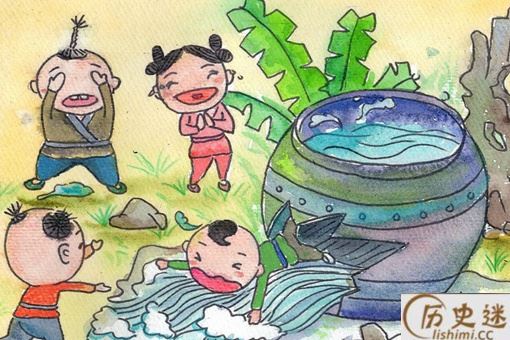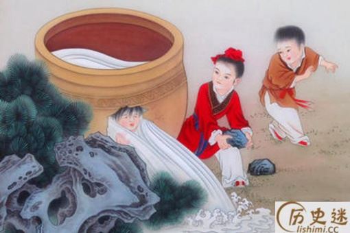 “群儿戏于庭,一儿登瓮,足跌没水中,众皆弃去,光持石击瓮破之,水迸,儿得活(《宋史》)。”