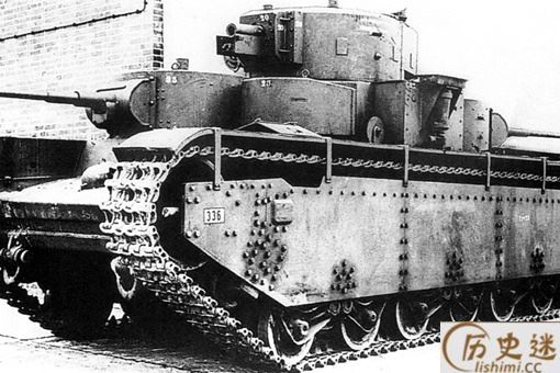 T-35坦克就是在这种设计理念下被制造出来的,这辆坦克共有5个炮塔主炮塔是中央炮塔,在最顶层,装1门16.5倍口径的76毫米榴弹炮(后改为24倍),携弹90发,另有1挺7.62毫米机枪。下面一层有4个炮塔和机枪塔;两个小炮塔位于主炮塔的右前方和左后方,两个机枪塔位于左前方和右后方。这种坦克看似火力十分均衡,前后左右都被照顾到了。