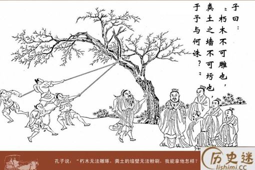 一天孔子讲课,发现宰予没有来听课,派弟子寻找后才得知宰予在睡觉。孔子便说:“朽木不可雕也,粪土之墙不可圬也(粪土的墙不能够粉刷),对这种人还说他什么好?”“起初对他,听其言而信其行;而现在对他只能听其言而观其行了。宰予让我改变了看法”。