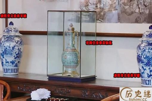 正房待客厅的条案上放置着一对康熙青花瓷将军罐以及乾隆仿景泰蓝铜瓶,架子上的瓷器多到数不过来。在节目中,王刚也时刻提醒大张伟他们要小心谨慎,轻拿轻放,可见这些古董的价值。