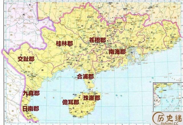 汉朝时,汉武帝灭南越,在越南地区北部和中部设立交趾、九真、日南三郡。