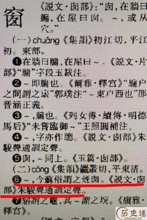现在的“窗”字,还保留了原始的意思。“窗”是由“穴”和“囱”组成的。现在我们还管烟道叫“烟囱”。而苏州一带,仍然管烟道叫“窗”。所以,“窗”和烟“囱”本来是一回事。而且囱(cong)和窗(chuang)的发音,在上古是完全一样的。