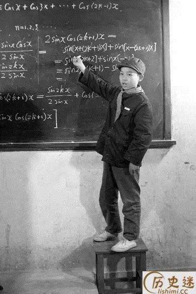 带着红领巾的谢彦波在课堂上演示老师出的习题