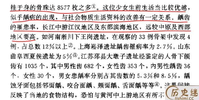 比如我国的姜寨遗址曾发现一例龋齿病患者:一位贵族少女遗骨,全身珠光宝气,