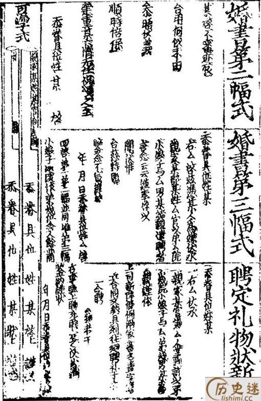 南宋人陈元靓的《事林广记》也收录有宋代婚书格式。只是宋刻版本已佚失,我们现在看到的《事林广记》,是元明刻本。
