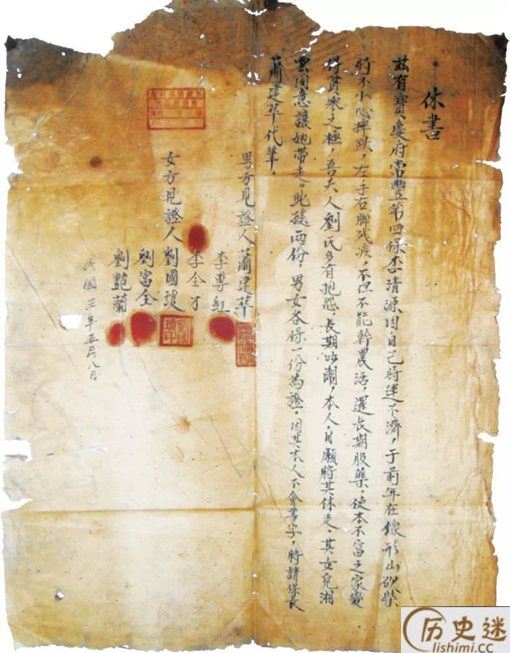民国初期的一份休书