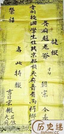 最近刚参加完高考的人,应该也陆陆续续收到自己大学的录取通知书。当然现在的大学通知书做的都是非常精美的,那你知道在古代中了科举的人他们的录取通知书又是怎样的么?其实古人对于能够金榜题名更加的看重,如果一个村出了一个状元,很快这个村就会被全国所熟知。一般都会把中了科举的人写在告示上张贴出来,这样大家也就都能知道了。貌似那个时候还没有什么快递服务,不过也要看地区,如果是很近的地方那也会有人通知你的。
